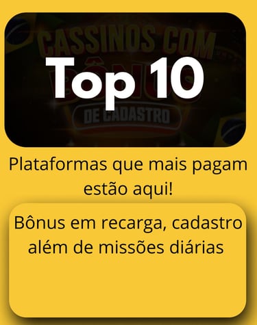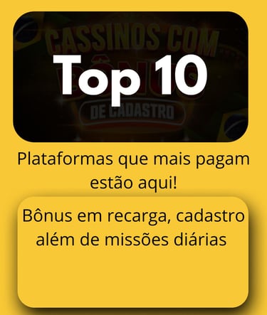 Seleção especial das Plataformas, com maiores Ganhos e Bônus GARANTIDO no cadastro!